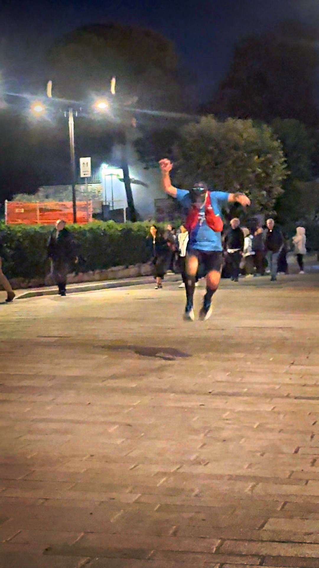 Și tot așa, tranca-tranca, am ajuns în Locorotondo. Traversam pe lângă cetate, chiar la km 69 — kilometrul ăla pe care voiam să-l alerg pentru Oana și Gheo — când parcă aud niște strigăte. Prima oară am ignorat, că nu avea cum să fie pentru mine. A doua oară am întors capul. Și îi văd pe prietenii mei: Delia, Gheo, Maria și Nae, cu care alergasem de dimineață. Veniseră cu trenul din Alberobello până în Locorotondo și fix în momentul ăla treceam eu pe acolo.