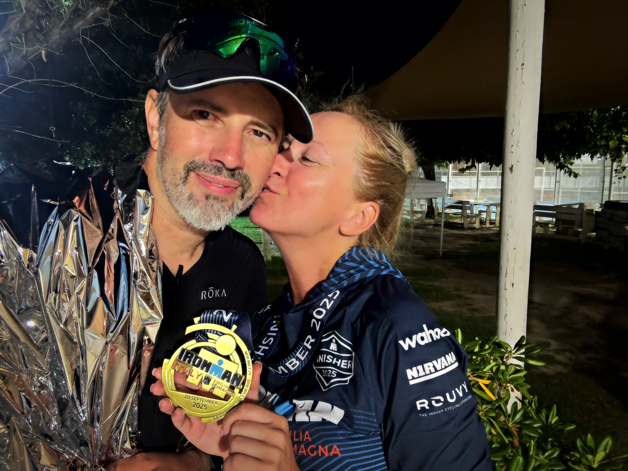Și apoi, fără pauză mentală, a venit Emilia Romagna. Un Ironman perfect ca organizare și crunt ca simțire. Înot superb, biclă de viteză și o alergare care s-a transformat în cel mai ciudat duel dintre ambiție și durere. Și totuși, momentul-cheie n-a fost pe traseu, ci la kilometrul 32, când am vrut să renunț și Carmen mi-a spus simplu: „Hai.” Un cuvânt. O resetare totală. Restul a fost încăpățânare, pași mici, haine ude, durere care m-a îndoit ca pe un semn de întrebare și un finish trăit în brațele ei.