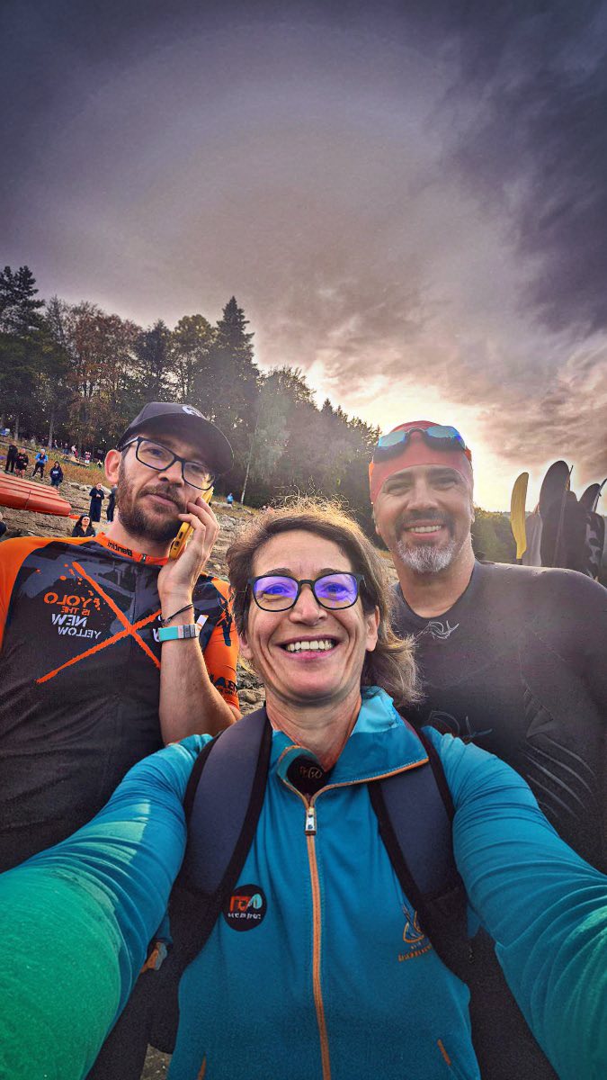 Anul ăsta mi-am dat seama și mai clar că nu alerg singur, oricât de lung e drumul. Carmen a fost cu mine în aproape fiecare competiție — uneori pe margine cu talanga, alteori în cursă, alteori într-un simplu „hai” spus exact în secunda în care mi se rupea sufletul. A fost lângă mine la Hamburg, la Xman, la Garda, la Legal Half, la Puglia, la Transfier, la Emilia Romagna… și, fără să facem din asta poezie, prezența ei a ținut în picioare mai multe curse decât își imaginează. Sunt momente în care nu ai nevoie de nimic altceva decât de omul tău care te privește și îți spune că poți.