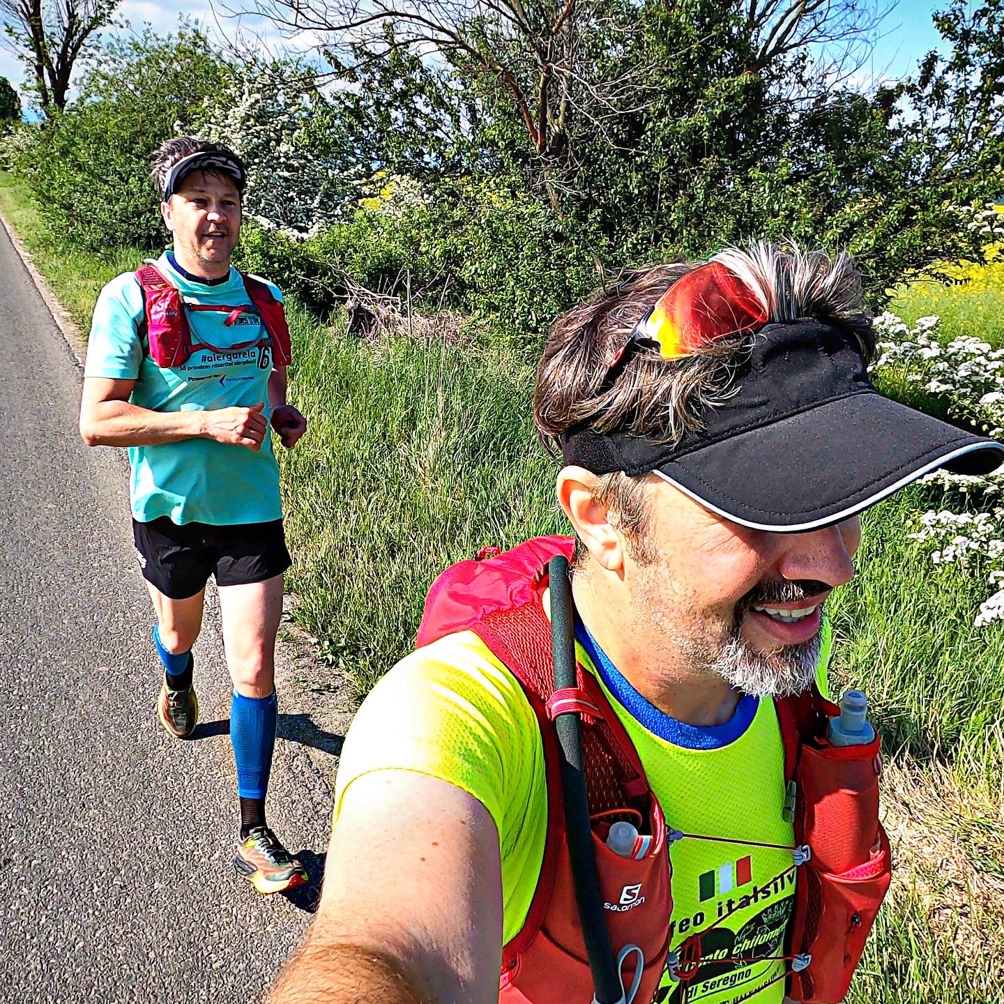 Pana la jumatatea traseului totul a fost in regula. Apoi a inceput sa fie tot mai cald. De la km 30 i-a fost nitel mai greu, ca deh, daca era usor facea toata lumea maratoane ? dar s-a descurcat admirabil, fara târșâiala si lungit agonia. Pe la km 32 am laut niste apa intr-un sat si ne-am balacit. Senzatia a fost faina, a avut efect vreo 10-15 minute ? Pe la km 38-39 a fost cel mai fain. Vedeam orasul in zare, dar cu cat ne apropiam de el, cu atat el parea ca se indeparteaza ? La km 42.2 l-am anuntat ca e oficial maratonist. Alergase primul lui maraton in aproximatov 4:28 dar pe caldura si cu rucsac in spate, fara puncte de alimentare cum e intr-un concurs oficial. Alergasem destul de constant, ceva mai incet pe ultimii 10 km dar acolo oricum e un fals plat mai pacatos. Am mai alergat vreo 3 km, ne-am balacit si racorit in centru orasului la o fanta arteziana, am facut celebra poza cu #Sepsi si ne-am dus acasa. ?