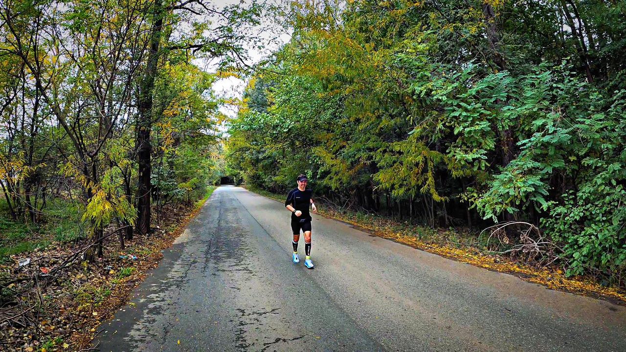 In rest, pe langa faptul ca de la km 80 a inceput o ploaie “buna”, rece si cu vant, care m-a udat pana la piele, de a trebuit sa ma schimb de doua ori, lucrurile au decurs ca de obicei. Trezit la 4, mancat paine cu gem, masaj, plecat la Comana, luat start, apa si gel la fiecare 5k, certat cu cainii, latrat la mai multi dintre ei, cand frig, cand mai cald, ploaie si un finish in forta, ud din cap pana in picioare ?