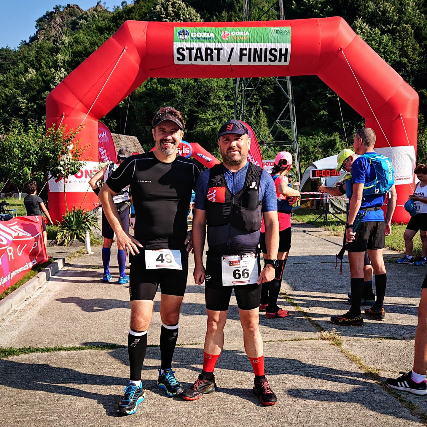 Astfel, toate conditiile unei experiente chinuitoare pareau indeplinite. Si indeplinite au fost. ? Am avut o cursa cat se poate de grea, in care am combinat concentrarea pe ceea ce aveam de facut cu dezbaterile interminabile, pe subiecte cat se poate de aberante, cu Vali, partenerul meu intr-ale trailurilor. El fiind in forma si plictisindu-se nevoie mare, ma provoca intr-una cu fel de fel de tampenii, nelasandu-ma sa sufar si io, “ca omul”. ? Ce mai, toata cursa a fost un râsu’-plânsu’ ? lucru care a facut sa nu ne dam seama cum trece timpul. Iar timpul stie sa se scurga foarte repede, atunci cand nu vrei. Am scos cateva minute peste sapte ore ? asigurandu-ne un loc intre primii 5… de la coada clasamentului, mai exact 4 si 5 ?