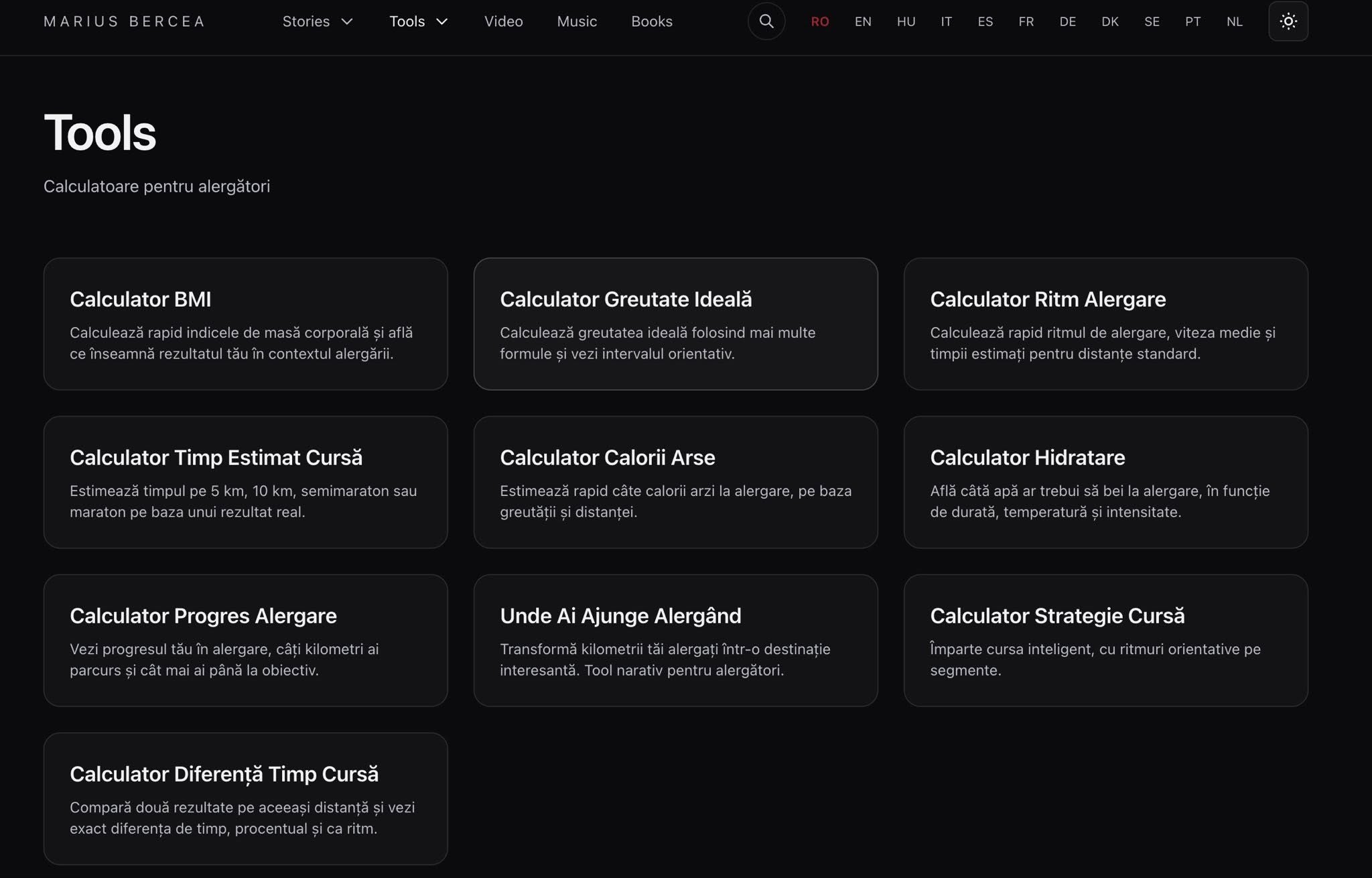 Un alt proiect drag, la care lucrez de ceva vreme, e refacerea site-ului meu, care încă e în teste. În paralel, am construit și un branding internațional, The Running Storyteller, cu direcție clară, canal de YouTube și tool-uri foarte interesante pentru alergători sau pentru oameni care vor să-și schimbe viața, să slăbească, să se pună în mișcare. Nu sunt toate gata, dar sunt pe final.
