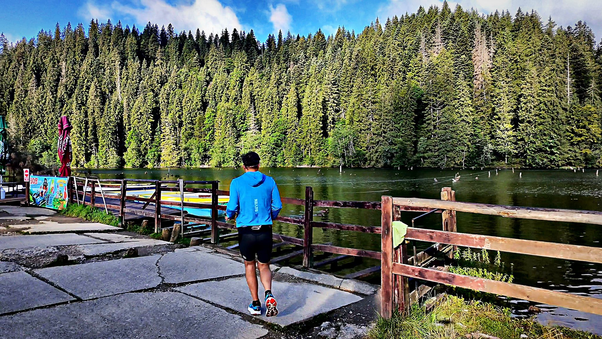 A fost o ocazie neașteptată, deși aveam tone de lucru fiind pe final de proiect și cu lansare. Platforma de evenimente cu miri și alte avioane – vă zic io când e gata 🤭. Paul mă sună că are o treabă la Lacul Roșu și mă-ntreabă dacă nu dau o tură cu el. Și na, rupt de oboseală, ce-ți dorești mai mult decât două drumuri lungi pe Valea Prahovei, dus-întors în 36 de ore, țac-pac 😂. Măcar aveam un motiv: primisem pantofii noi și trebuia să scriu un review despre ei. Lacul Roșu suna perfect – și asfalt, și munte, și coclauri, și-o mâncărică bună, dacă se ivește. Și chiar s-a ivit!
