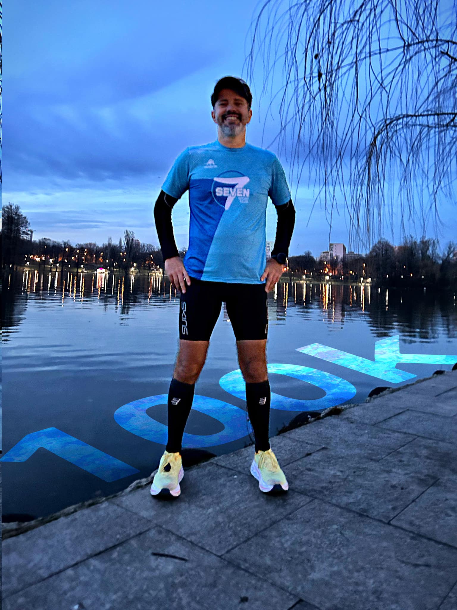 M-am trezit sambata dimineata la 5. Aveam majoritatea boarfelor pregatite, inclusiv haine de schimb de orice fel. Ca eram patit. Oricum eram peste drum de casa ? Am pregatit sase bidoane cu izotonic, am facut un masaj scurt, incalzire, si am coborat. Startul si punctul de alimentare/hidratare il aveam in parcarea unde tin masina, de langa biserica de lemn, exact pe unde trece traseul meu (mai lung) din jurul lacului.