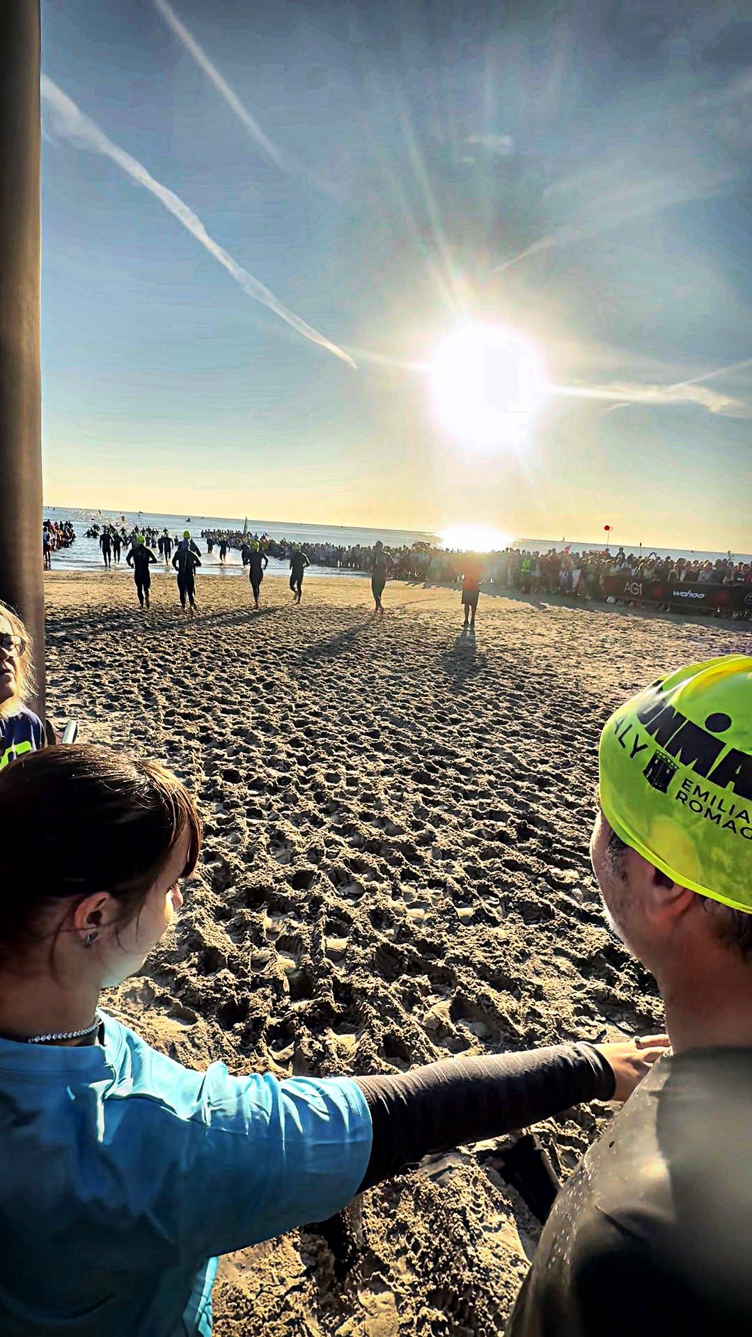 Acolo erau un milion de oameni! Exagerez, dar erau 2500 de concurenți plus familiile și însoțitorii lor. Atmosferă fantastică. O fanfară a cântat imnul Italiei, MC-ul Ironman-ului spunea vorbe din alea care te bagă în draci, iar apoi a urmat acel moment cu tobele tribale și aplauzele într-un ritm tot mai alert. Un moment incredibil, care-ți face pielea de găină și ochii umezi, să vezi atâția oameni făcând treaba asta la unison, în timp ce MC-ul striga vorbe motivaționale care îți intrau în sânge.