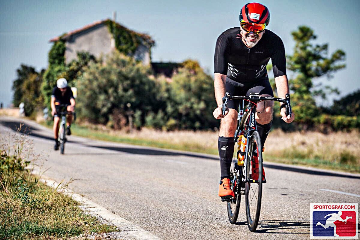 Deja din a doua tură a început să bată vântul mai tare. Dar la a doua întoarcere de la Bertinoro deja se întărise bine. Nu era un vânt periculos, să te răstoarne, dar suficient cât să-ți facă viața grea. Eu respectam planul: nu voiam să consum mai multă energie decât era cazul. Din mers, mi-am dat seama că planul meu cu 80 g carbs pe oră era exagerat. Uitasem că nu voiam să trag 🤭. Am mers totuși cu 60 g pe oră și a fost suficient.