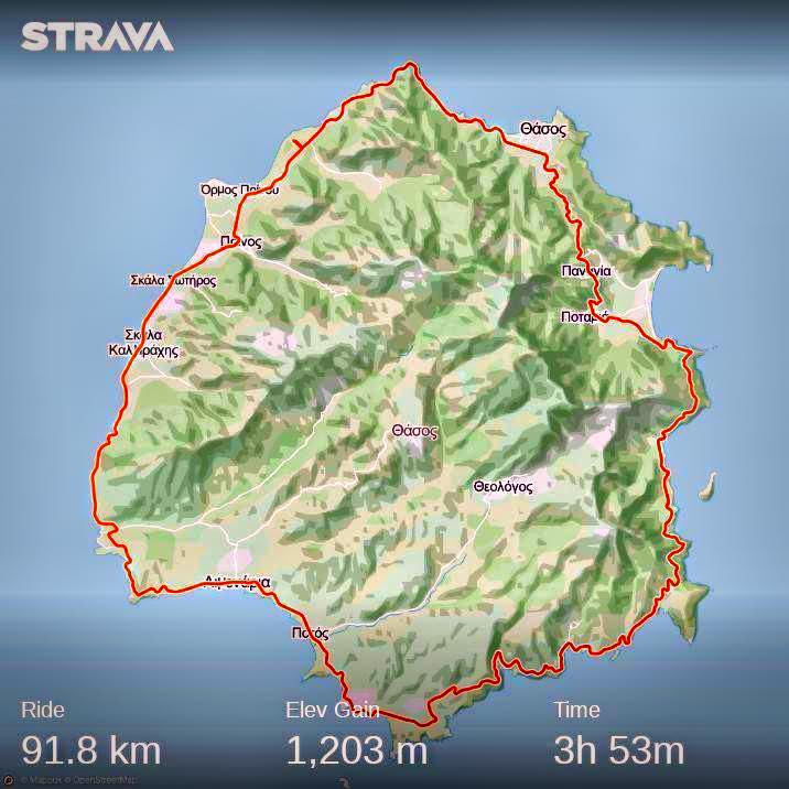 Kourabiedes sunt niste fursecuri grecesti, cu migdale, si care teoretic se fac in preajma Craciunului. Din acest motiv nici nu se gasesc chiar peste tot. Le-am gasit proaspete la o cafenea in Potos si la o patiserie in Panagia. Ambalate se gasesc, dar parca nu e aceeasi treaba. ? Eh, din nou motiv sa plec cu bicla, si daca tot am plecat spre est, spre Panagia, am zis sa ma intorc dinspre vest. ? M-as fi oprit si in Potos sa mai mananc cateva, dar din cauza vitezei, am ratat cafeneaua. ? Uite asa a iesit o tura de insula, 92 km cu 1200 m diferenta de nivel in ceva mai putin de 4 ore. Si ca sa fie treaba, treaba, am bagat si 30 min de alergare dupa, de-a iesit un brick de toata frumusetea ?