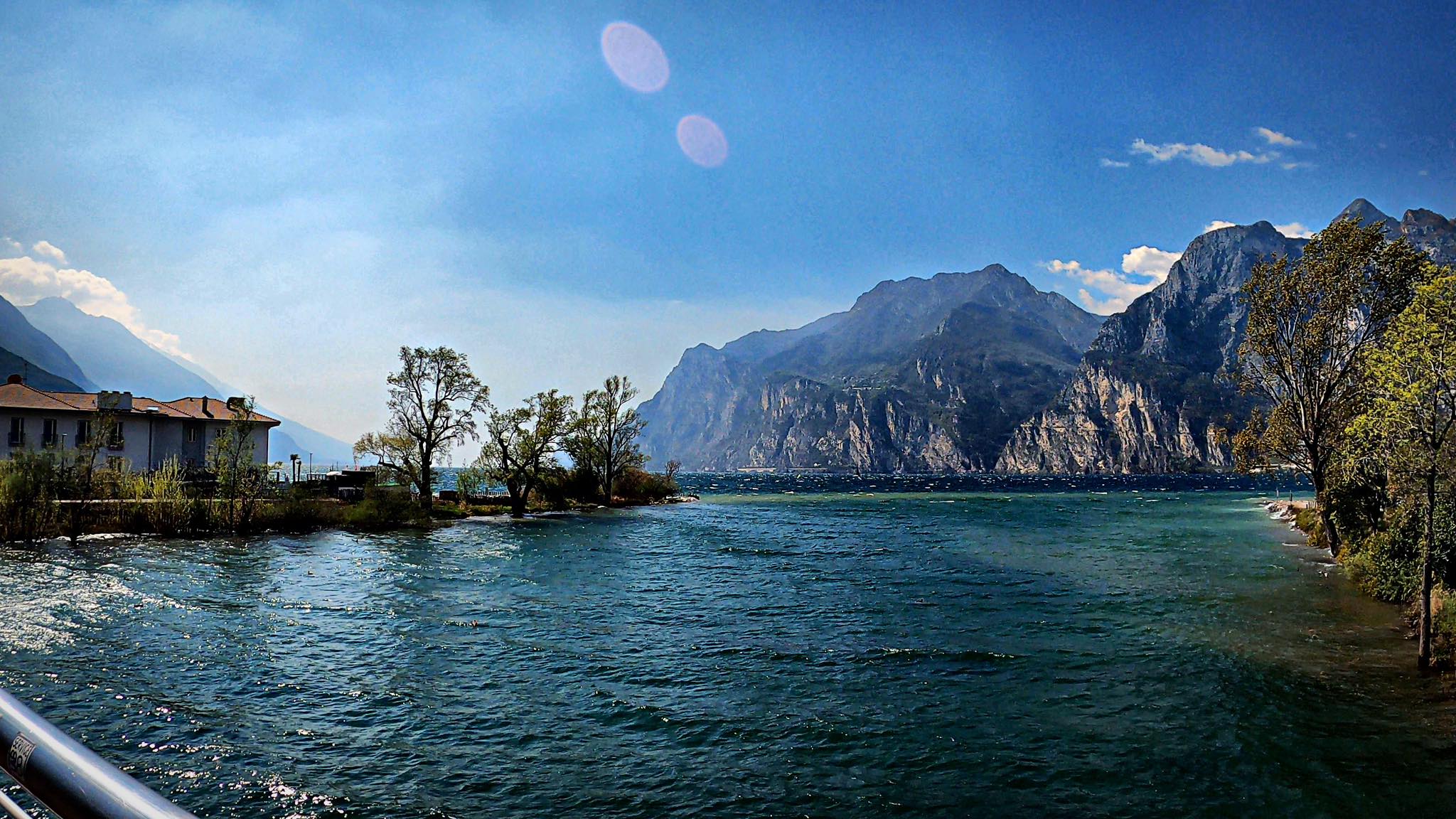 Ajungem pe malul lacului și ne lovește vijelia. Valuri mari, în unele locuri ieșite din lac. Trebuia să ocolim bălțile formate, pentru că apa ajunsese până pe alei. Vântul bătea din lateral, rece și turbat, dinspre apă. Mi-am dat seama că drumul spre Malcesine o să fie provocarea supremă. Mai ales prin tunelele lungi, unde curentul de aer făcea ca totul să pară că e tras cu aspiratorul.