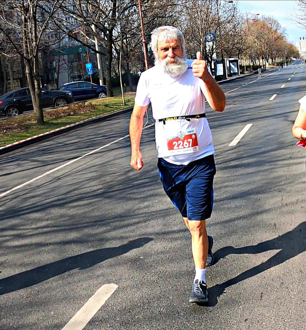 După primii kilometri ne împrietenim cu Costel – un tânăr de 72 de ani – și stăm la o vorbă faină. A început alergarea în 2017, dar deja are peste 60 de semi și maratoane, plus niște curse de 100 km. Respect. E genul de alergător de care dai doar când o iei mai lejer, dar care merită fiecare minut. Îți arată că „nu pot” e doar o scuză. Că ești prea bătrân, prea gras, obosit, ocupat, n-ai timp, n-ai susținere… toate sunt povești. Și nu doar în alergare. Îmi plac mult oamenii ca el. Mă inspiră. Îmi reamintesc că vreau să fac asta pe termen lung – 70, 80, poate chiar până la 100 de ani. Și mereu glumesc (dar nu chiar): la 90 vreau să bat recordul mondial la 100 km sau la Ironman. Dacă trăiesc până atunci, nu văd de ce nu. 😋