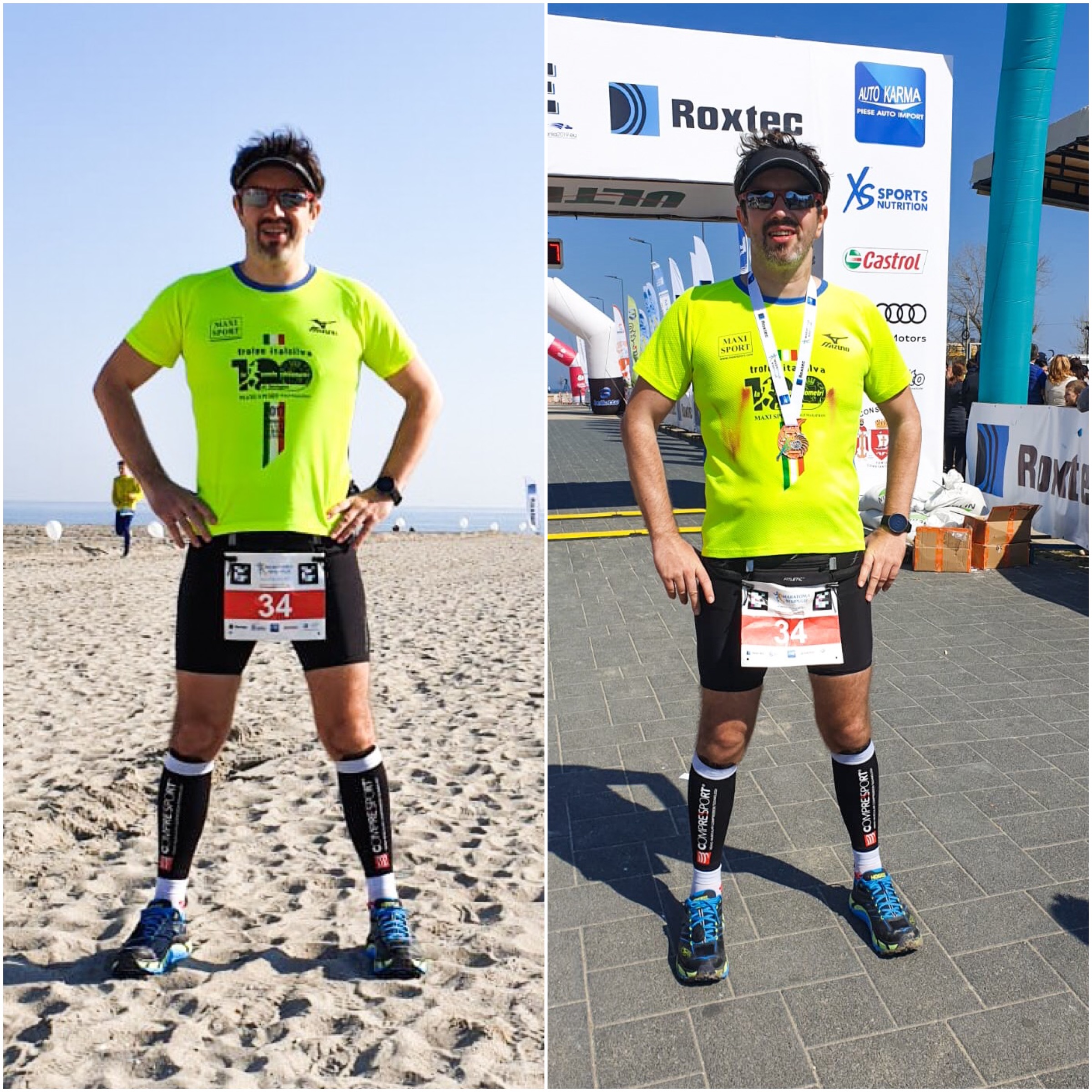 Maratonul Nisipului este unul dintre preferatele mele. Se alearga pe malul marii, pe plaja... Nu am avut vreun obiectiv, a fost mai degraba un antrenament lung in care mi-am propus sa alerg primii 35 km lejer si sa trag pe ultimii 7. Totul a iesit conform planului, inclusiv nutritia si hidratarea. Terenul a fost mai dificil decat la celelalte editii la care am participat, deoarece nisipul era moale si am fost nevoit sa alerg foarte mult exact pe mal, bucurandu-ma de mai multe ori de apa marii, care a avut grija sa-mi mangaie si racoreasca picioarele. ?? Medalia este una dintre cele mai frumoase dintre toate cele castigate in cei 4 ani de cand am luat-o pe acest drum ?❤️?♂️