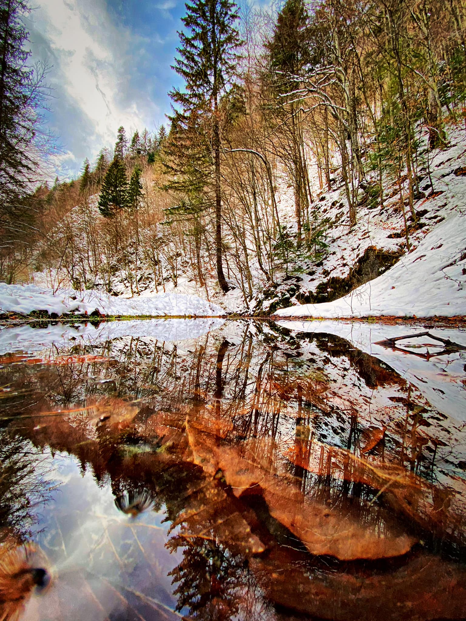 Dus - intors, 8km de plimbare prin zapada. Aproape doua ore de clatit ochii cu peisaje superbe si incarcat cu energie pozitiva.