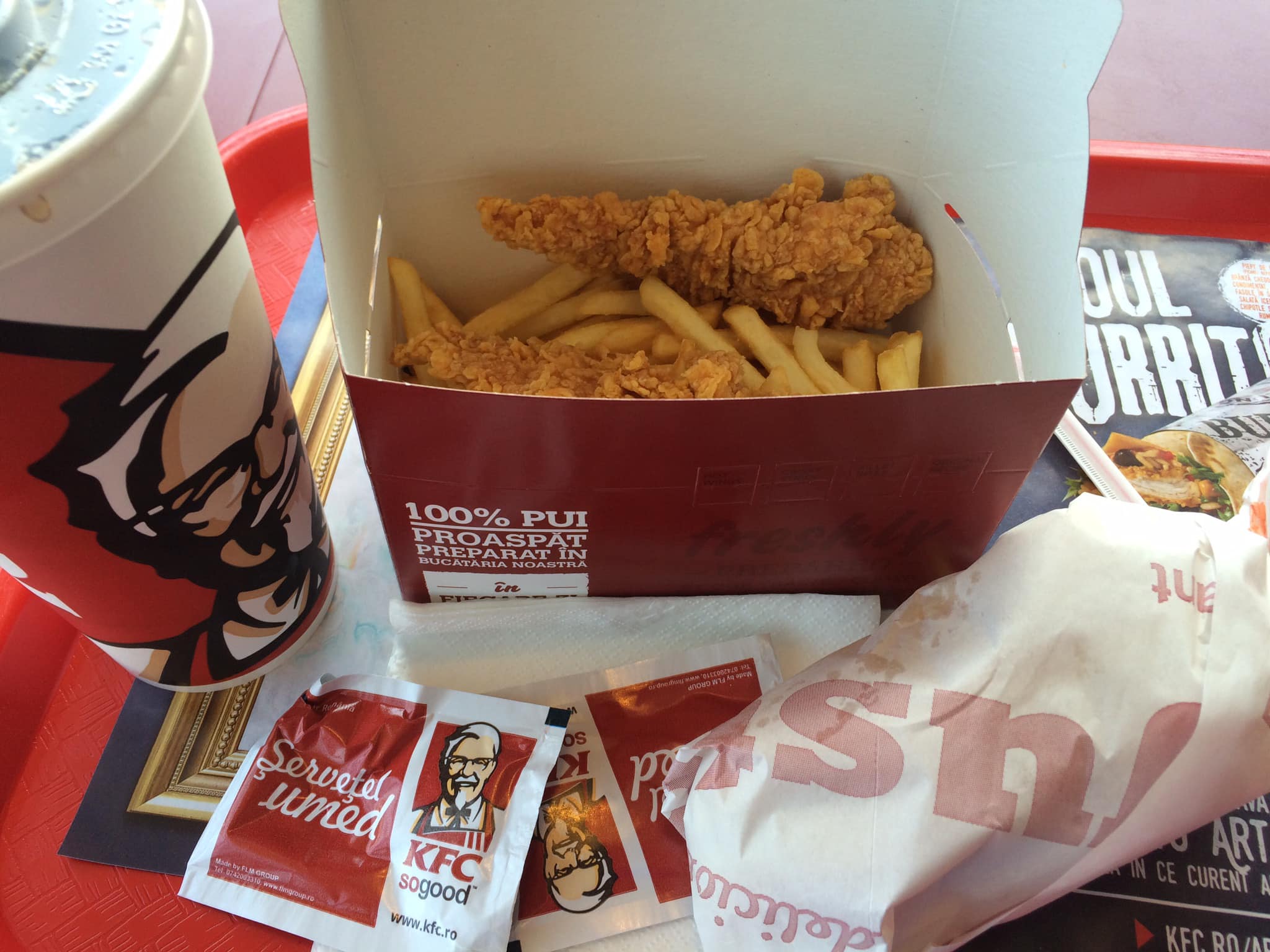 Din fericire, la Mall Băneasa există un KFC în parcare. Acela a fost salvarea mea. M-am oprit acolo pentru un ospăț pe cinste. Era km 50. După o destrăbălare cu cartofi prăjiți, crispy și multă cola, am plecat mai departe cu forțe proaspete.