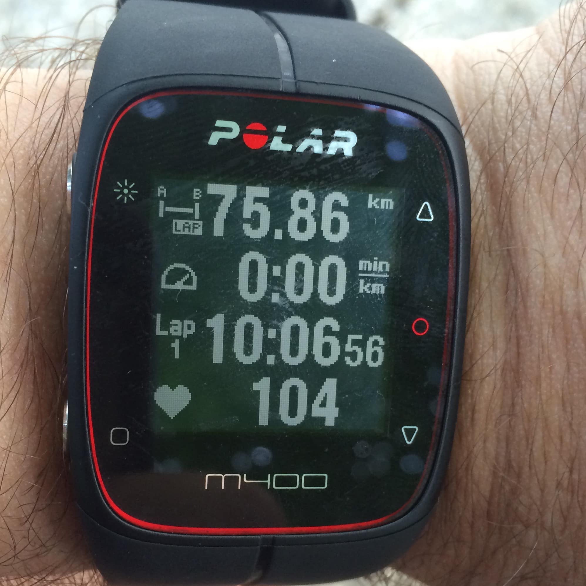 Era km 70 și mi-am propus să mai dau o tură, să mă văd la 75. Am făcut o buclă combinată de Casa Poporului și Parcul Izvor. Pe urcarea de lângă Casa Poporului am realizat că bateria ceasului e pe terminate. Ar fi fost neplăcut să-mi “moară” ceasul. Aveam la mine un acumulator și l-am pus la încărcat. Eram pregătit pentru această situație. Nu-l mai puteam ține pe mână și l-am băgat în rucsac, spunând toate rugăciunile posibile, să nu cumva să se reseteze sau blocheze. A supraviețuit săracul. Era un Polar M400, fain ceas, primul meu ceas de alergare. ?