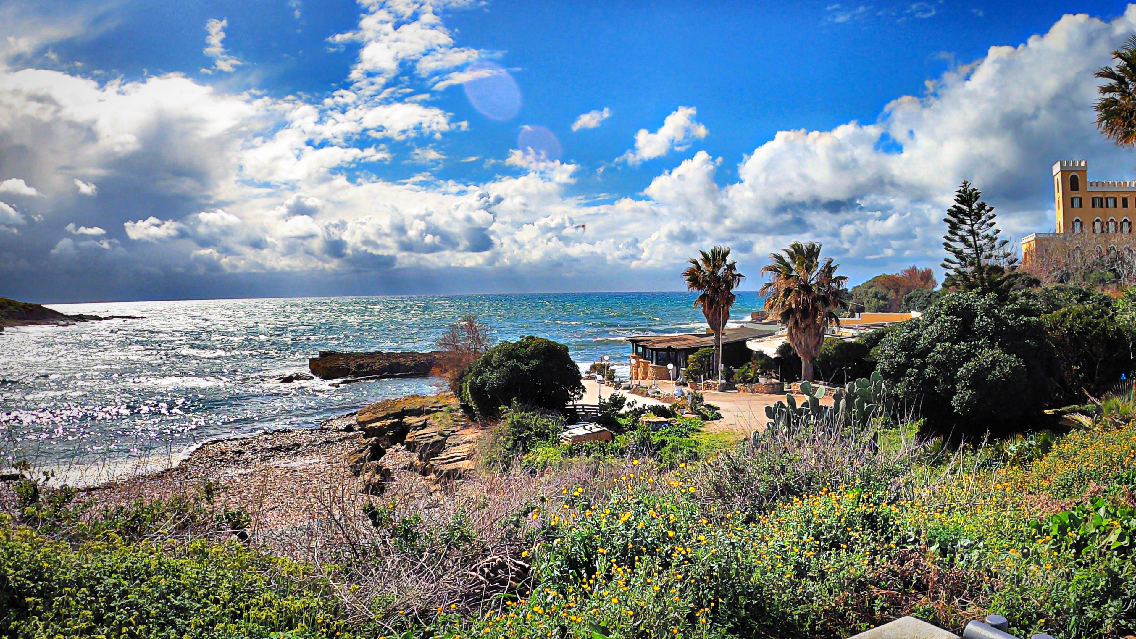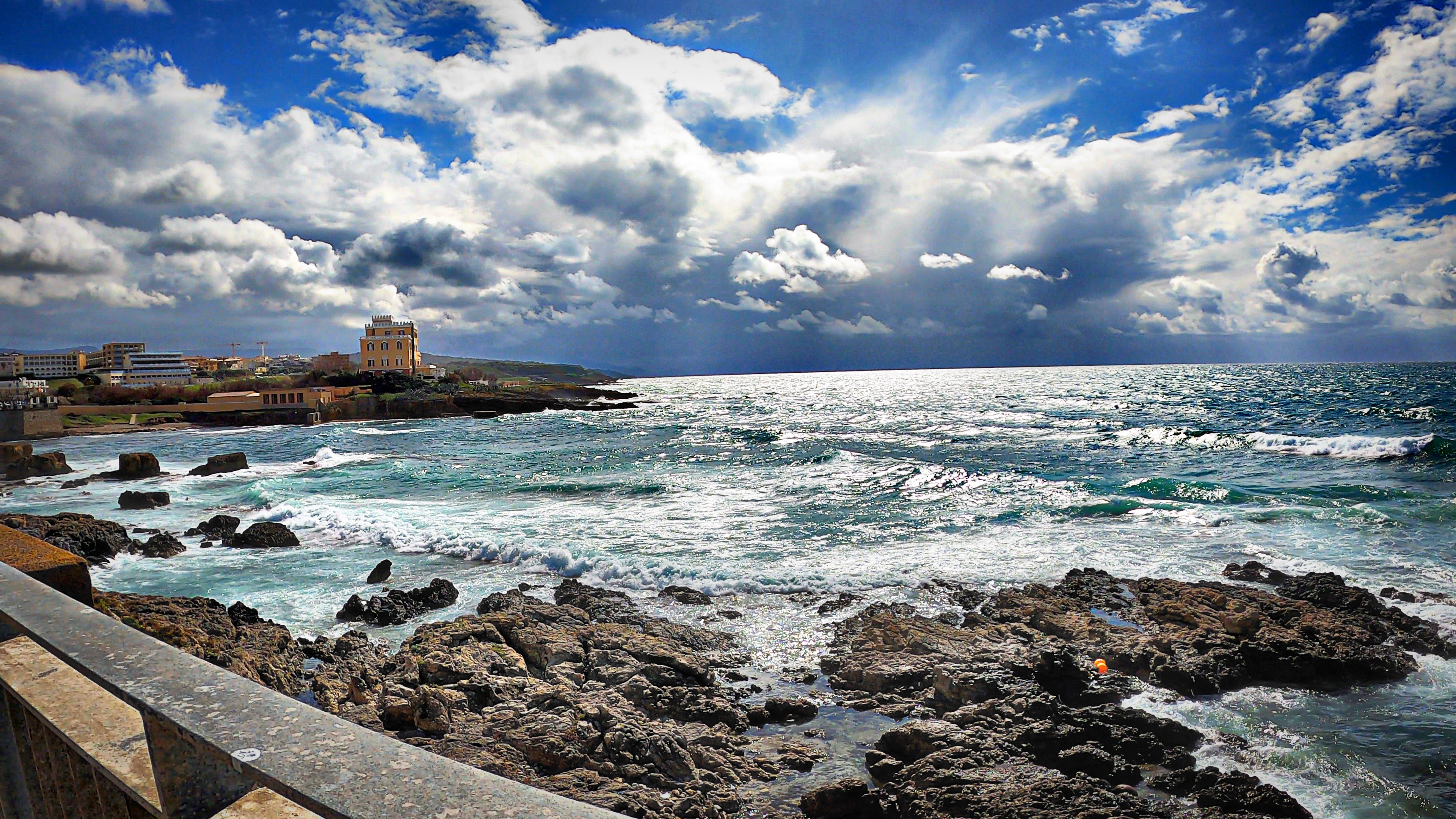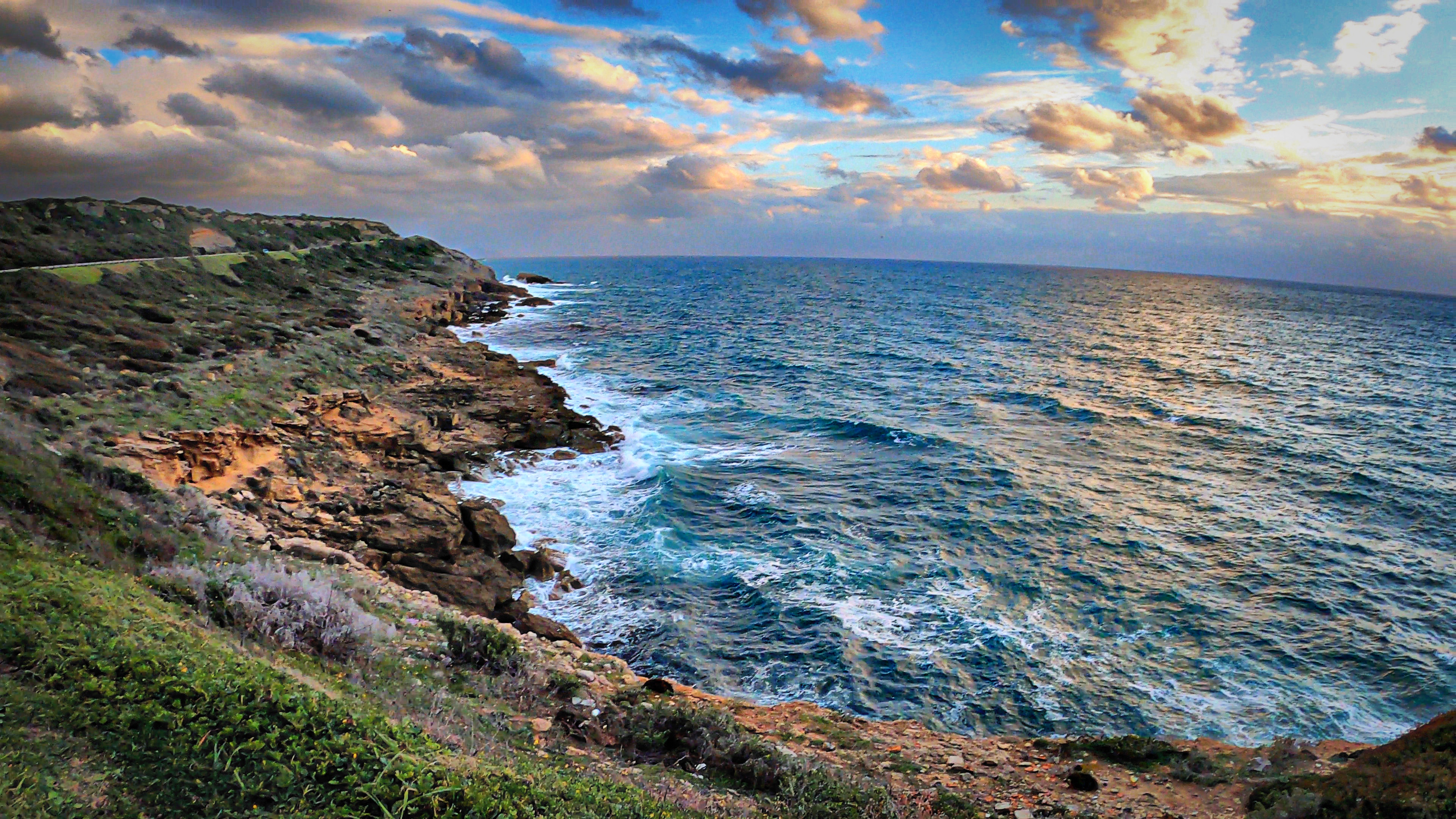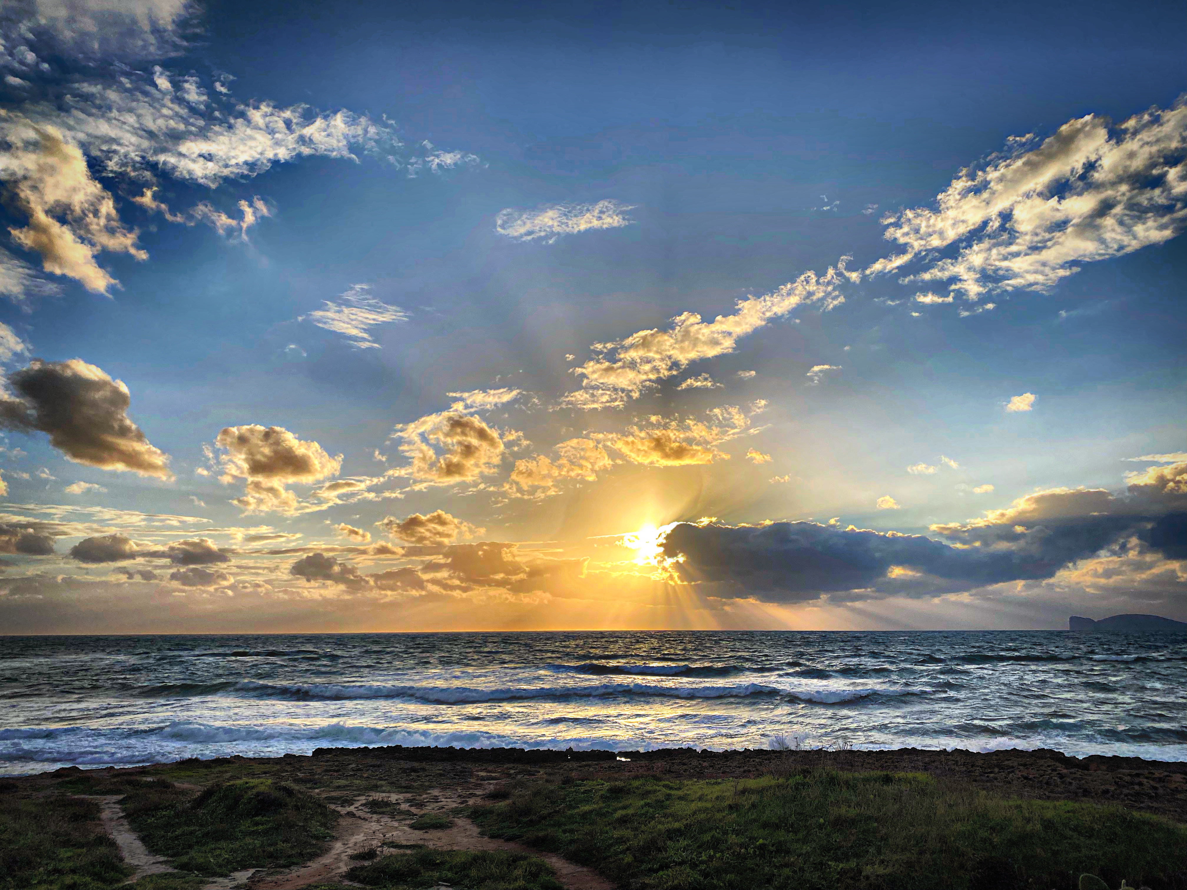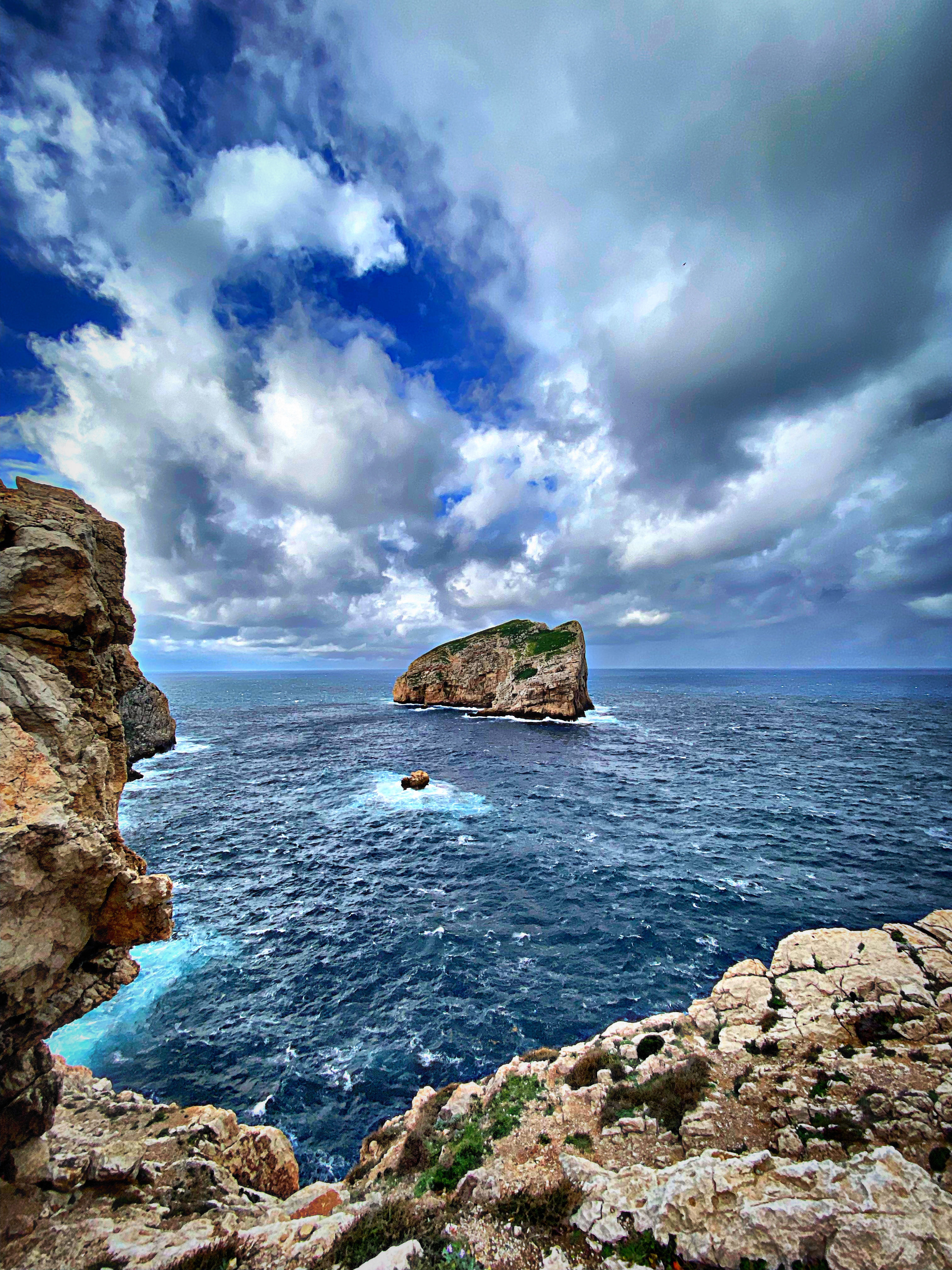 In prima parte kilometrii treceau repede. Am barfit si dezbatut diverse subiecte, ne-am bucurat de peisaj. Desi ploua intr-una cu mici pauze, mai tare sau mai incet, peisajul era tot mai fain. Prima parte o alergam catre Capo Caccia (nord vestul insulei) si desi era in apropierea marii, drumul era ferit in mare parte de vant datorita vegetatiei. Pana pe la km 20 nu s-a intampla nimic interesant. Povesti si multa apa. Apoi am observat ca soarele incearca sa iasa dintre nori, iar la km 23, la Capo Cacio a reusit sa-si faca loc. Vali se lauda ca a facut incantatii. Il cred daca el zice asa ? Soarele iese pentru putin timp, dar suficient cat sa facem niste poze superbe. Apoi s-a ascuns iar si a inceput ploaia.
