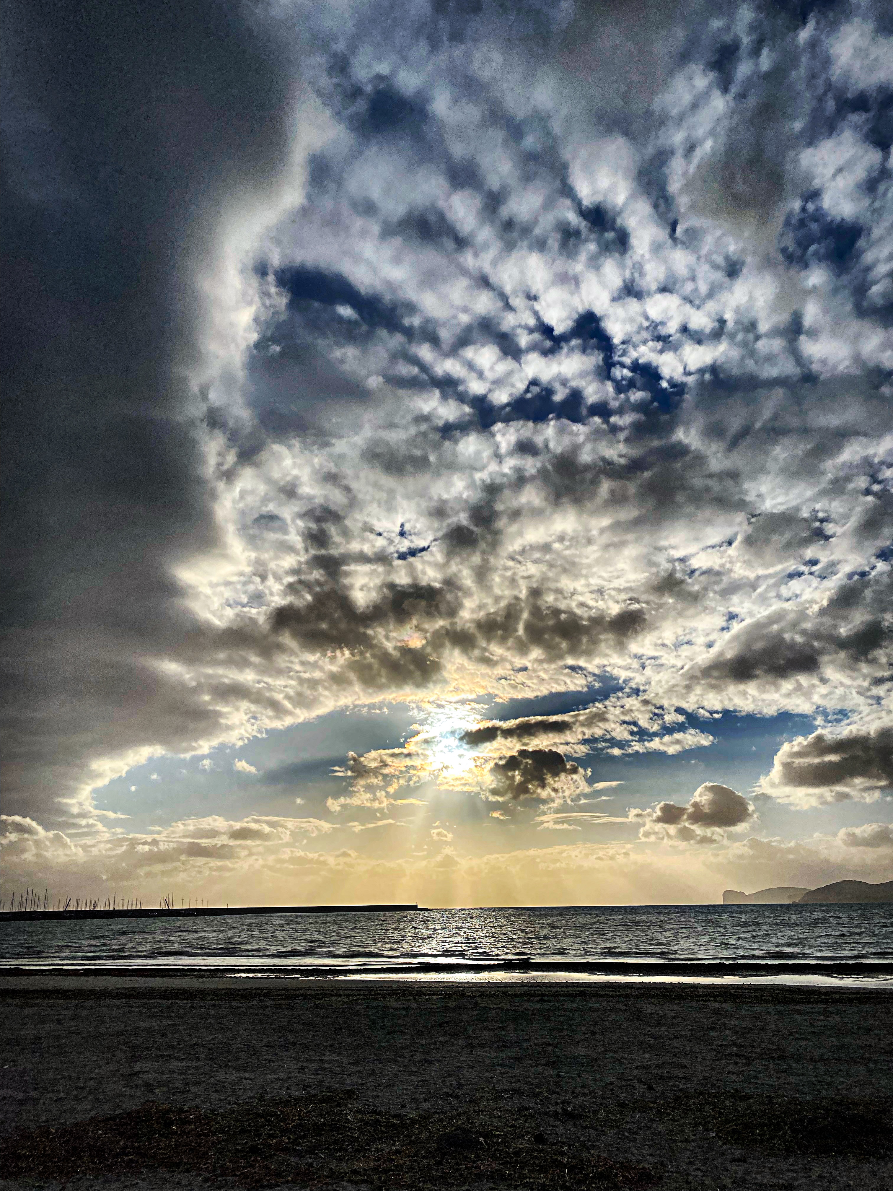 Intru in Alghero. Pe promenada e un soare superb care iese dupa un nor mamut. O sa prind apusul, imi zic. Si atunci imi pica fisa. O iau spre Bosa, cu orice risc. Nu mai trebuie sa crosetez, traseul este superb, iar apusul si orasul se vad perfect. Mai aveam de alergat 15 km. 2.5 prin oras, 5 pe acel drum si inapoi. Eram si curios daca bate vantul, mai ales la ora aceasta cand in oras era destul de ok vremea. Si-a batut. Exact cum am aproximat. Ca la balamuc ? Dar apusul a fost superb. Iubesc acel drum, am mai alergat pe acolo. Privelistea e incredibila chiar daca era deja seara. Totusi, nu m-am incumetat sa fac toata distanta propusa pentru ca era tarziu si riscam sa ma intorc pe bezna. M-am intors in oras, am refacut calculele si-mi lispeau 3 km. M-am incumentat, i-am facut pe faleza, chiar langa plaja, aproape de mare. Gata, 100 km!