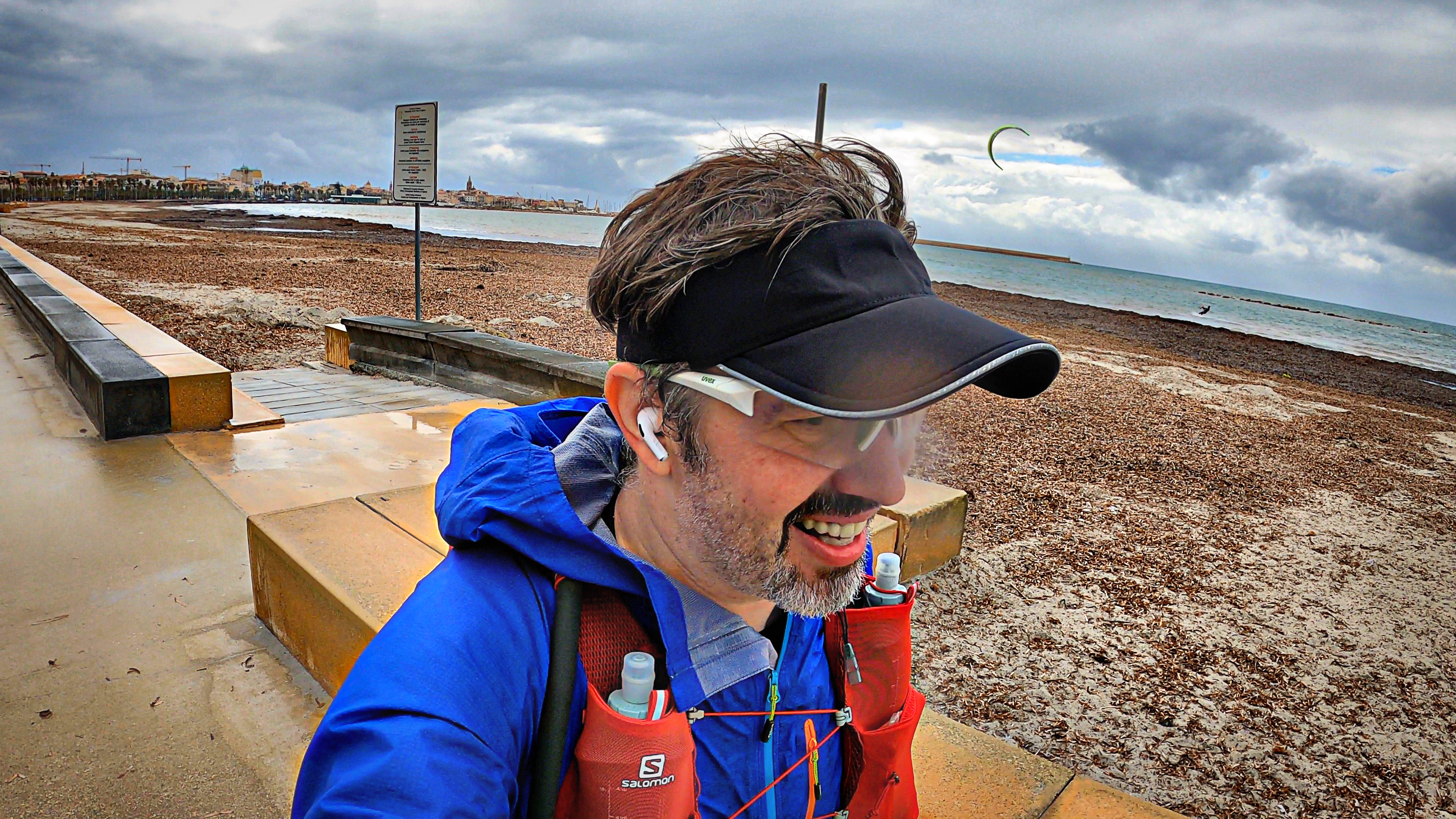 Pana in fata cazarii au iesit 46 de km asa ca ne-am mai dus 2 km prin oras, pe faleza. Era soare, peisajul pitoresc, marea superba, cu valuri mari. La km 50 eram in casa. Am facut refill cu lichide si geluri, schimbat niste haine si cand sa ies aud ca toarna. Ma echipez din nou in casa si plec. Urma sa alerg a doua jumtate singur. Vali a avut niste “probleme tehnice” si-i era imposibil sa mai continue. Si-am plecat din nou.