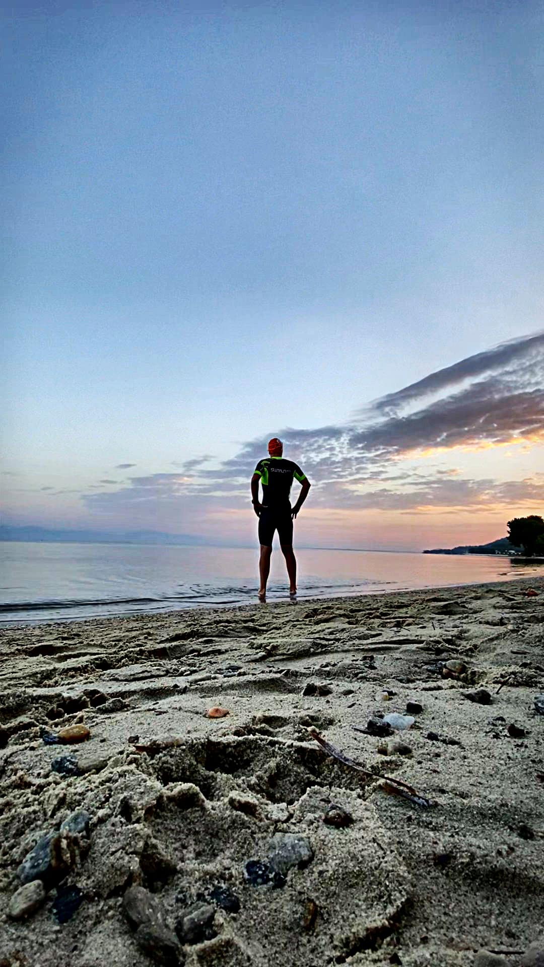 Ma trezesc si ma uit la ceas. E 4:45. Mi-am pus ceasul sa sune la 5:30, dar nu mai pot sa dorm. Am hotarat sa iau o decizie privind acest triatlon in aceasta dimineata (sambata), in ultima zi de sedere in Thassos. Stau in pat si incerc sa-mi analizez corpul. Oare sunt in stare sa-l fac? M-am pricopsit acum 4 zile cu o raceala, asa din senin. Nu foarte agresiva si cu efecte doar la nivelul nasului si gatului. Si-al ochilor, din cand in cand. Muscular n-am resimtit nimic grav. Am facut acum 2 zile un test (bicla si alergare) si parea ca fizic sunt ok. Ieri am facut un inot scurt si la fel, parea ca sunt bine. Nasul si gatul par mult mai ok decat in zilele anterioare, in rest nu ma doare nimic. Ma hotarasc, il voi face! Ma ridic din pat si incep sa-mi pregatesc tot ce tine de nutritie, hidratare, echipamentul pentru cele trei probe, diverse lucruri necesare pentru orice situatii neprevazute, si multe altele.