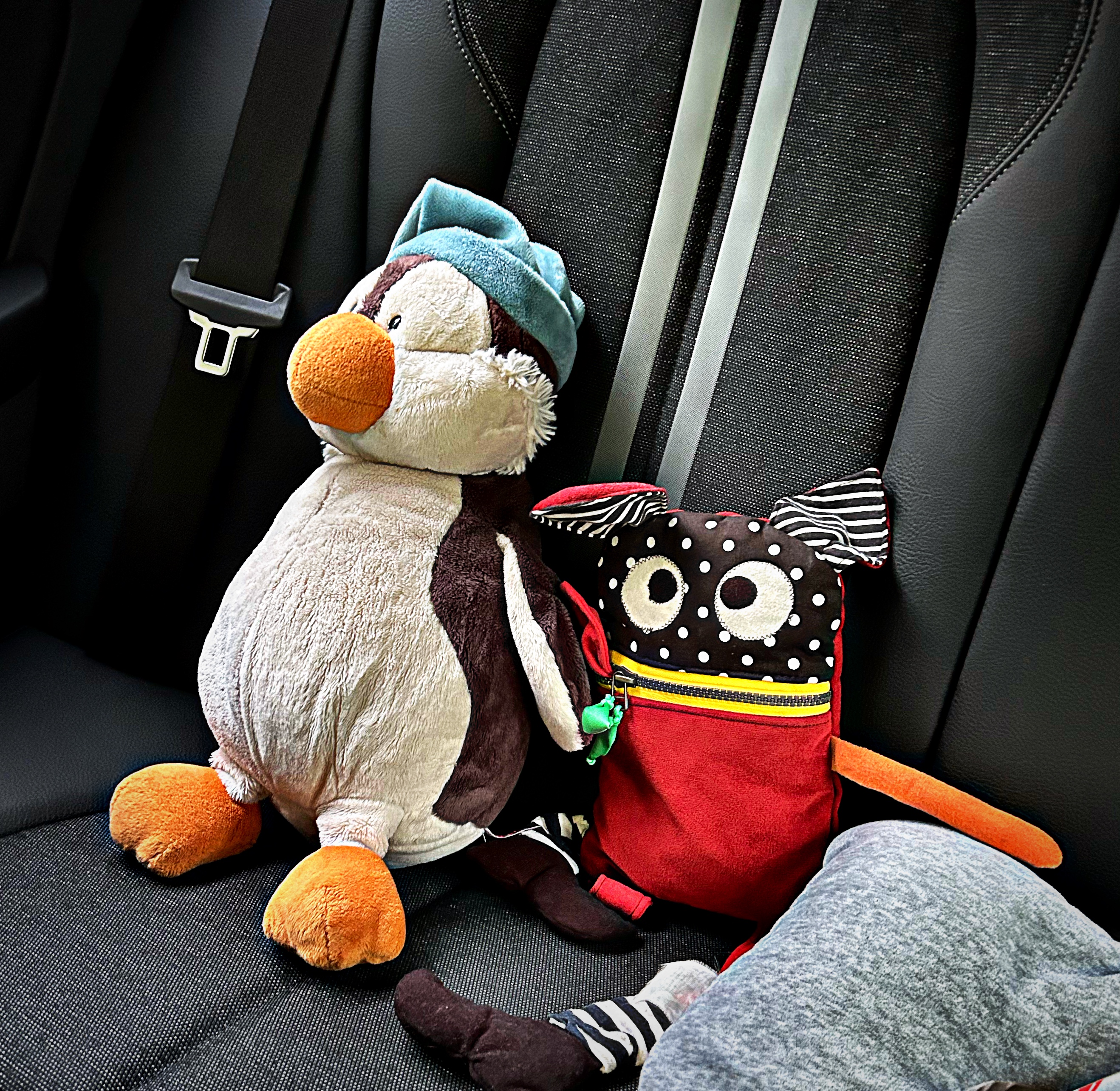 Aici totul era pregatit pentru somn. Carmen facuse loc pentru toti trei, sa incapem si sa putem dormi cumva. Erau si ei obositi si terminati dupa atatea ore. Mi-am pus cizmele, Carmen mi i-a pus pe Pingu (un pinguin grasut ? pe care il am de la Paul) si Marciu (un mutunache pe care l-am luat candva din Satu mare si care era de fapt un “mancator de griji” pentru copii ?) in brate, m-a invelit cu o patura groasa si ne-am pus la somn. I-am spus sa puna alarma peste o ora si 45 minute. Nu stiu cat am dormit exact. Stiu ca mi-am tot pornit aparatul de masaj de vreo 3-4 ori, dar cel putin o ora cred ca am dormit adunat. M-am mai trezit de cateva ori din cauza durerilor de picioare, dar am adormit repede la loc.
