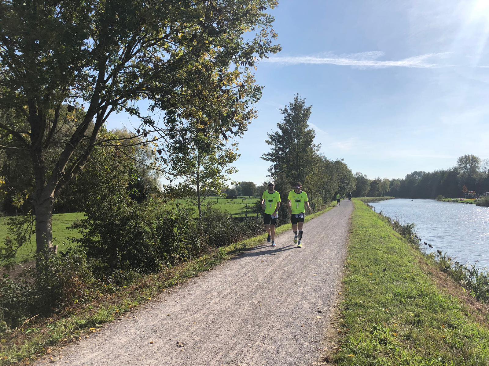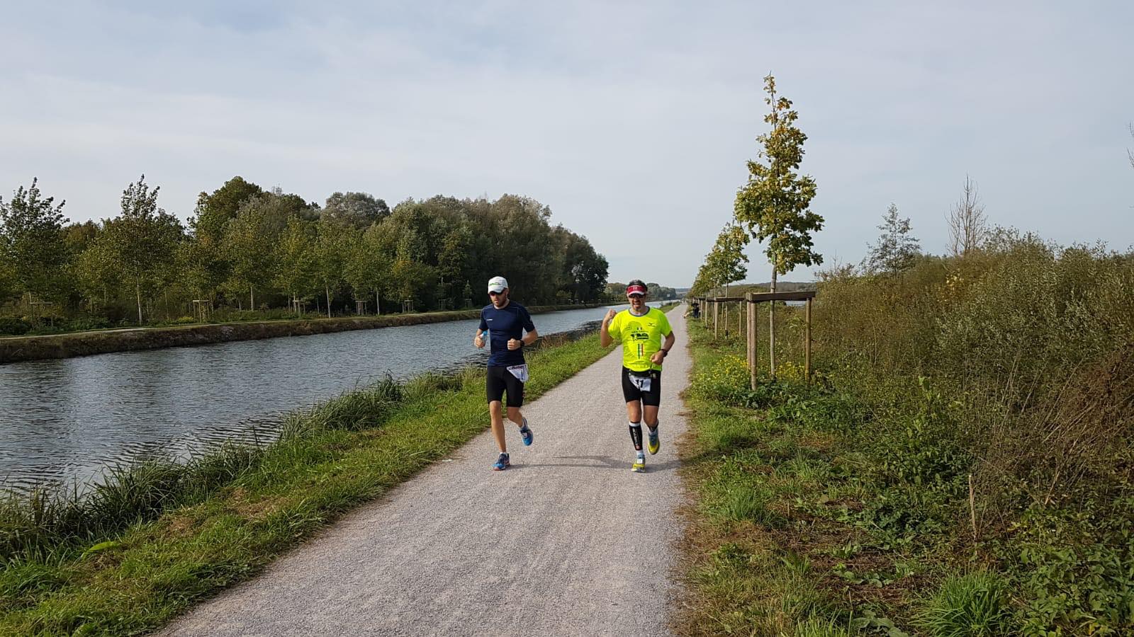 Am vazut de cand m-am inscris ca traseul este unul deosebit, pe malul raului Somme, cu doar vreo 20% asfalt, fara o diferenta semnificativa de nivel si am considerat ca va fi o cursa usoara. Dar cum planul de acasa nu se potriveste cu cel din targ, am descoperit ca apa curge la vale (nu pe plat), iar vremea a fost mult prea frumoasa, cu soare si prea cald pentru o asemenea alergare. In aceste conditii, de la km 35, cand traseul a avut prima intoarcere, am descoperit ca lucrurile nu merg bine. Oricat de mica era inclinatia si combinat cu faptul ca disparuse absolut orice urma de umbra, am inceput sa consumam mult mai multa energie decat preconizasem, iar dezhidratarea era asigurata, oricata apa am baut la punctele de hidratare.