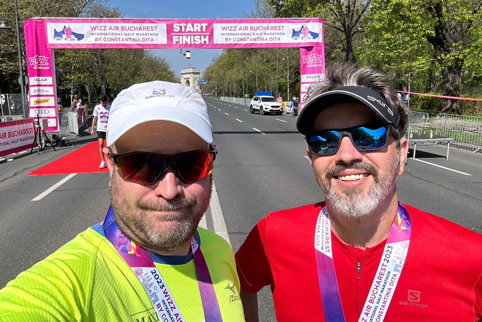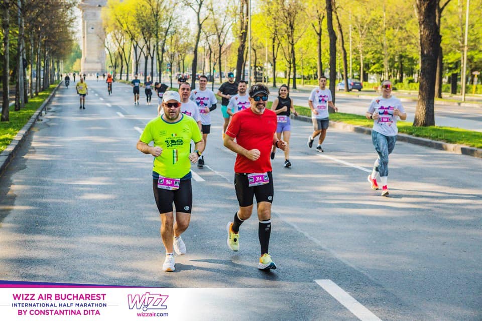Concursul acesta se organizeaza de vreo 7 ani, dar nu stiu care e problema lui de sunt asa de putini participanti. E adevarat ca si pentru mine a fost prima data. Organizarea e buna, traseul e foarte fain cu circulatia oprita. Poti admira Arcul de Triumf de doua ori, bdul Kiseleff, Piata Constintutiei, Piata Unirii, Bulevardul Unirii, Calea Victoriei si altele. Cred ca nu i se face destula publicitate, habar n-am. Cert e ca n-am fost prea multi participanti. La semimaraton am fost 431 de finalisti. In aceste conditii, alergatorii ajung sa fie rasfirati pe traseul la distante mari unii de altii. Orasul a fost destul de gol la ora aceea. Prin anumite interesectii vedeam masinile oprite de politisti si care asteptau sa trecem ca sa le dea drumul. Parca mi-a fost si jena in unele momente ca stau oamenii dupa noi, pana cand trecem “lipa lipa” trancanind ca tatele, in loc sa ne scuipam plamanii alergand de mama focului ? Totusi, in afara acelor 3-4 interesectii, am avut senzatia unei alergari intr-un oras gol. Nu zic ca a fost rau, ca era liniste, in multe locuri auzeam pasarelele cum ne canta si incurajeaza ?